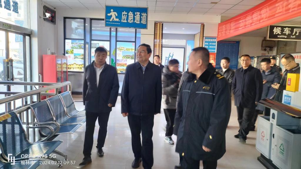 2024年2月12日上午9時30分,榆林市市委書記張曉光一行來到榆林汽車客運北站進行春節安全檢查和春節慰問工作。市交通局局長殷海艦、集團公司董事長喬宏澤、副總經理喬建斌、何瑞龍及榆林汽車客運北站站長田剛等陪同檢查慰問。